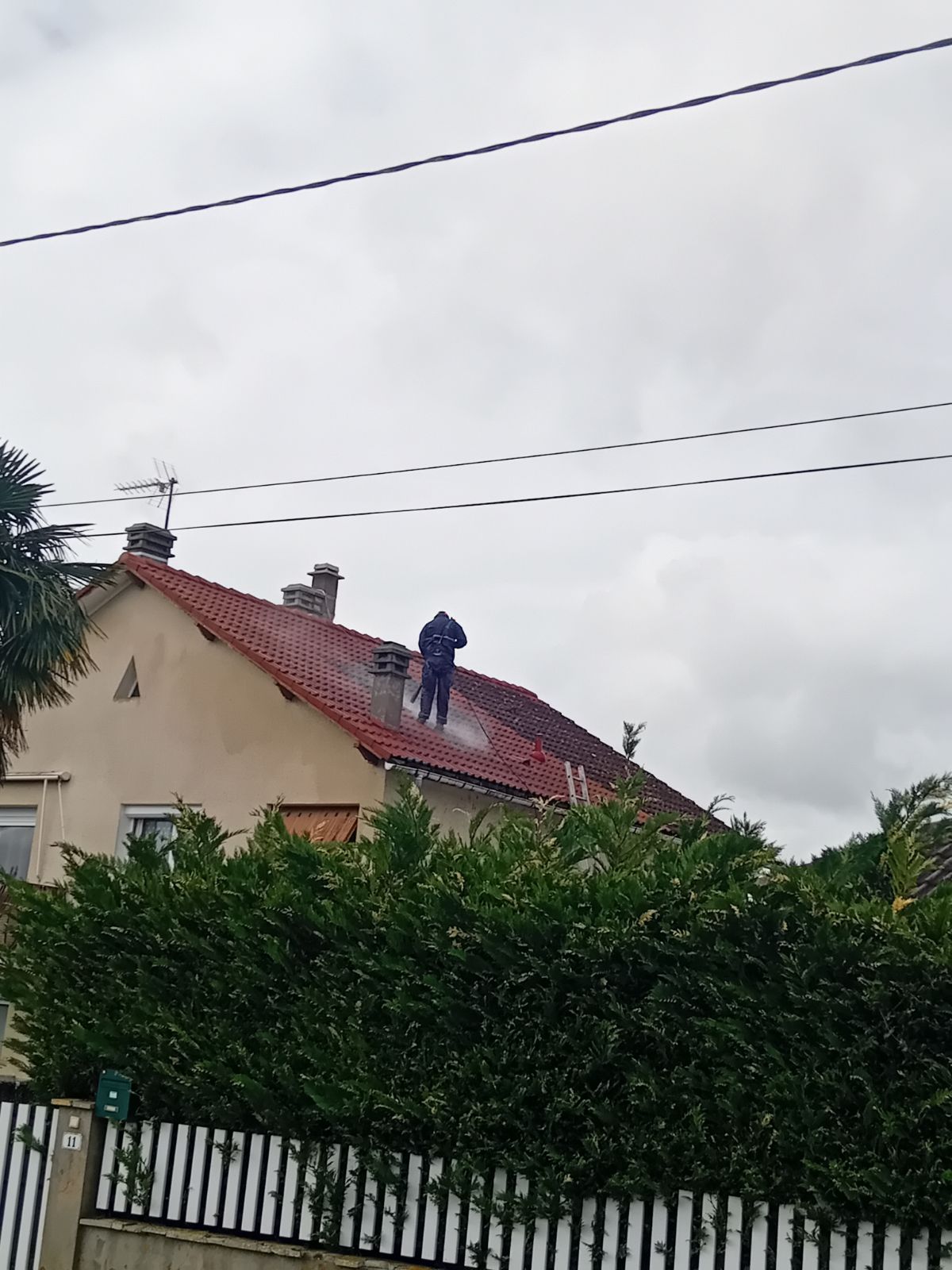 Nous avons réalisé le nettoyage d’une toiture en tuiles à haute pression à Thouars, en utilisant un karcher pour éliminer les mousses et saletés incrustées. Ensuite, nous avons appliqué une peinture de protection sur la toiture et la cheminée, améliorant à la fois l’esthétique et la durabilité de l’ensemble.