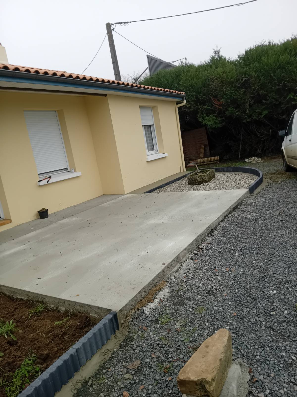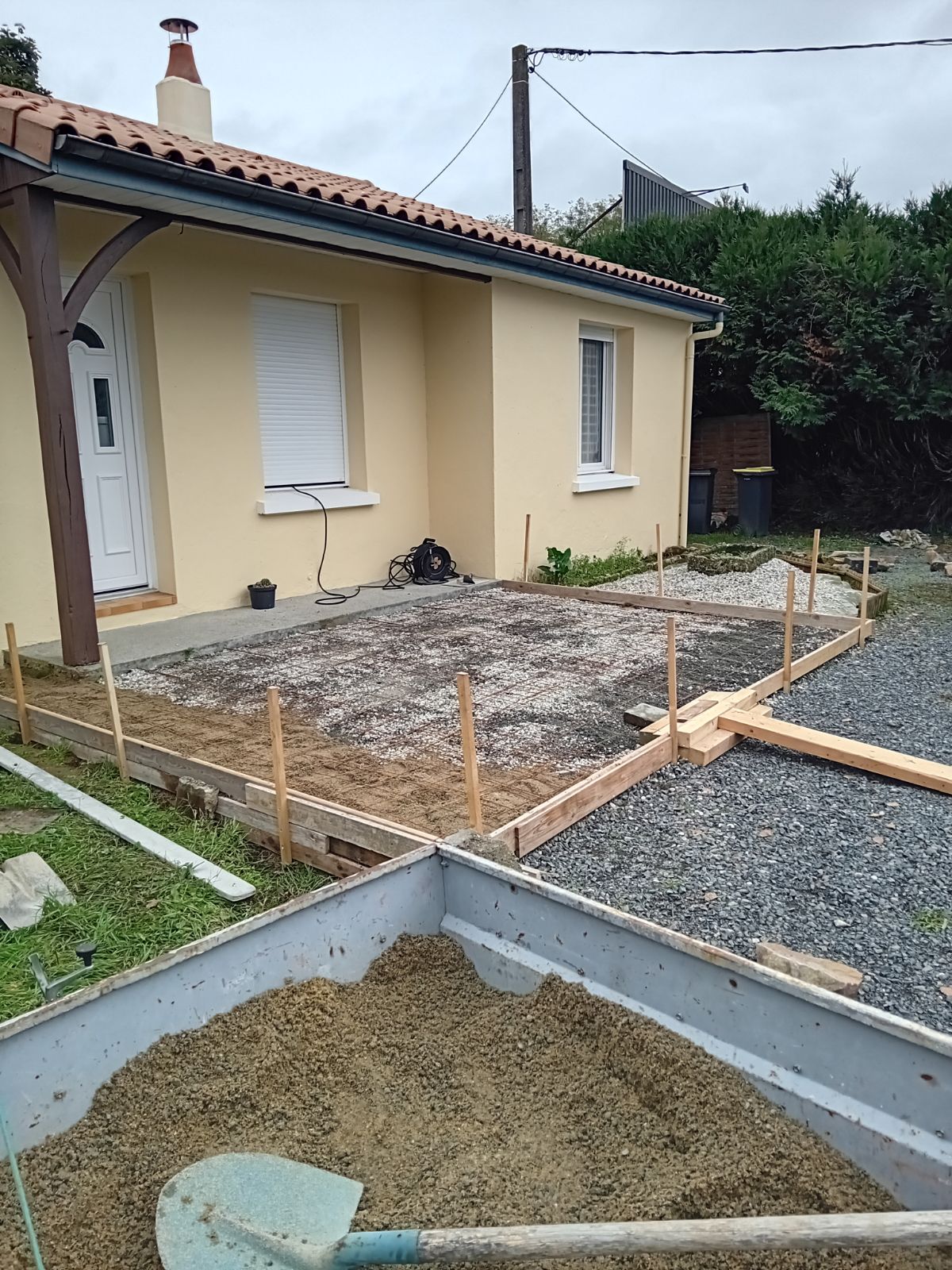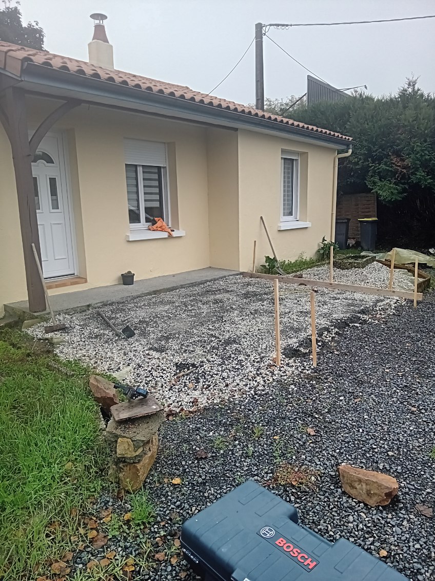 Nous avons mené à bien la réalisation d’une terrasse à Thouars, en suivant plusieurs étapes essentielles. Tout d’abord, nous avons procédé au coffrage pour définir les contours précis de la terrasse. Ensuite, nous avons posé un treillis métallique afin de renforcer la structure. La chape en béton a ensuite été coulée avec soin pour garantir une surface solide et uniforme. Enfin, nous avons terminé par la pose des bordures pour assurer une finition esthétique et durable.