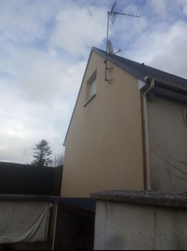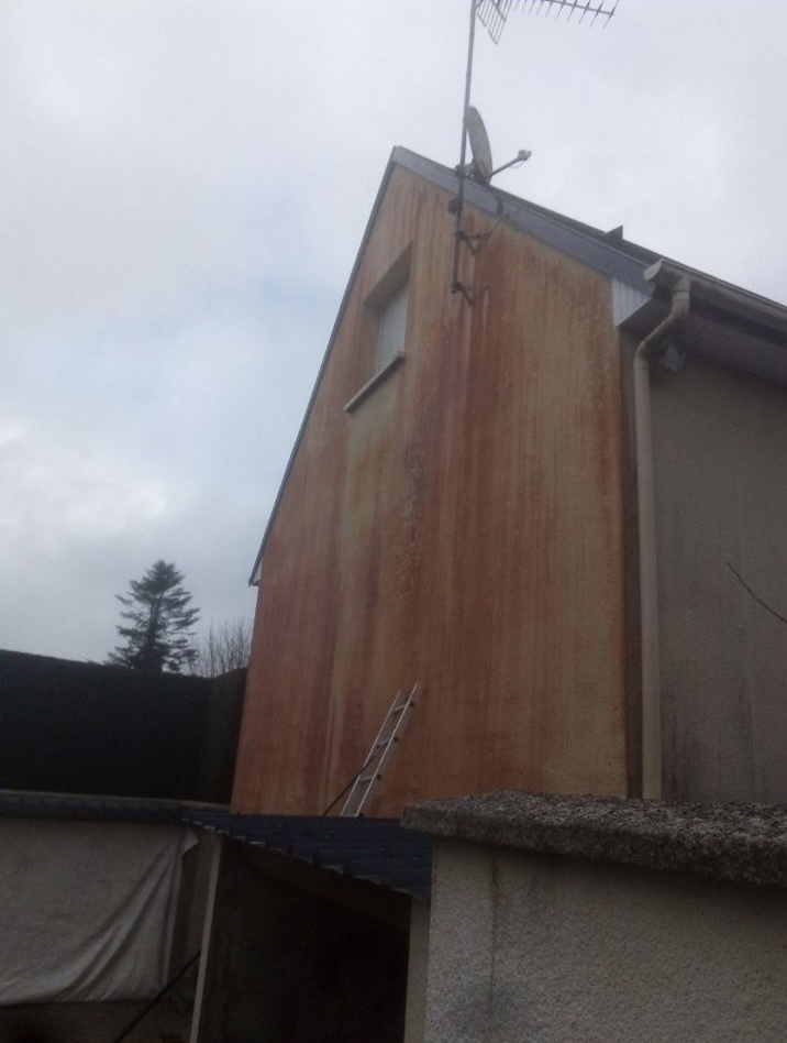 Nous avons effectué un nettoyage complet de la façade pignon d’une maison située à Thouars, présentant des traces rouges dues à des dépôts et des salissures d’origine naturelle (mousses, algues, lichens). Ce nettoyage en profondeur a permis de redonner à la façade son apparence d’origine, tout en éliminant les impuretés incrustées dans le revêtement. Pour prolonger la durabilité et protéger la surface contre les intempéries et les infiltrations d’eau, nous avons également appliqué un traitement hydrofuge de haute qualité. Ce traitement permet à la façade de rester imperméable aux infiltrations tout en laissant respirer le mur, assurant ainsi une protection durable et un entretien facilité pour les années à venir.